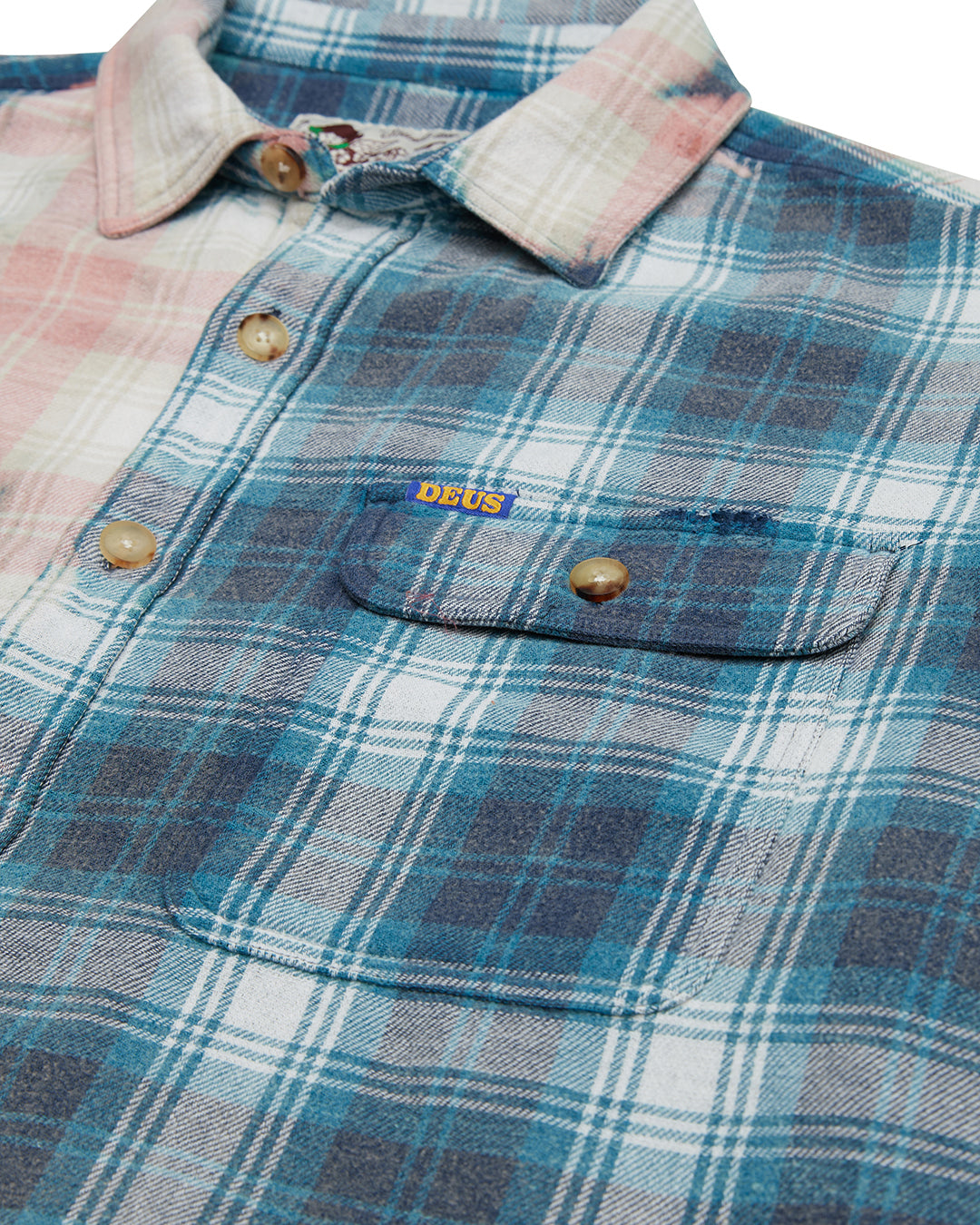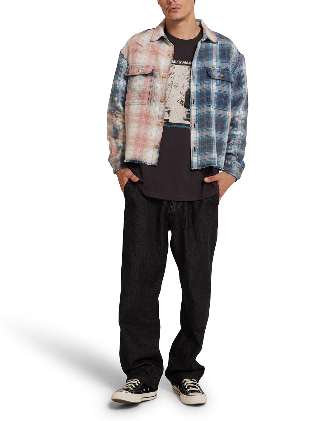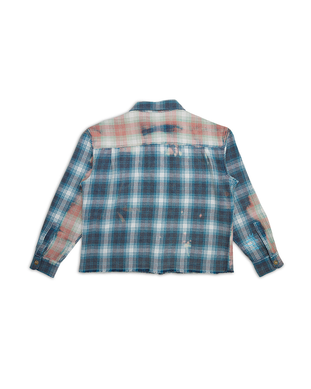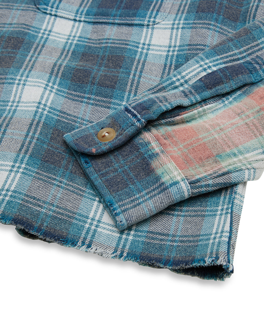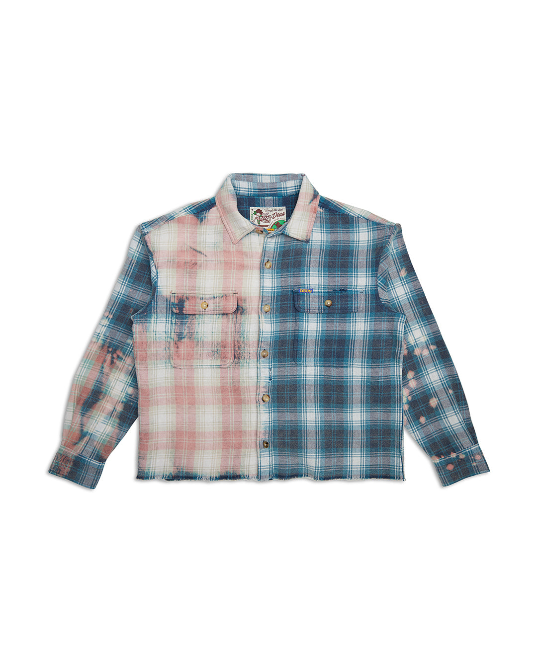 The Double Fantasy shirt is just that, a real best of both worlds. Everything you love about a classic flannel shirt gets treated to a relaxing day at the bleach for a totally unique distressed finish. The Double Fantasy is an oversized fit, yarn dyed, bonded flannel shirt, cropped with a raw edge and features real horn buttons, double front pockets and heavy enzyme stone wash.