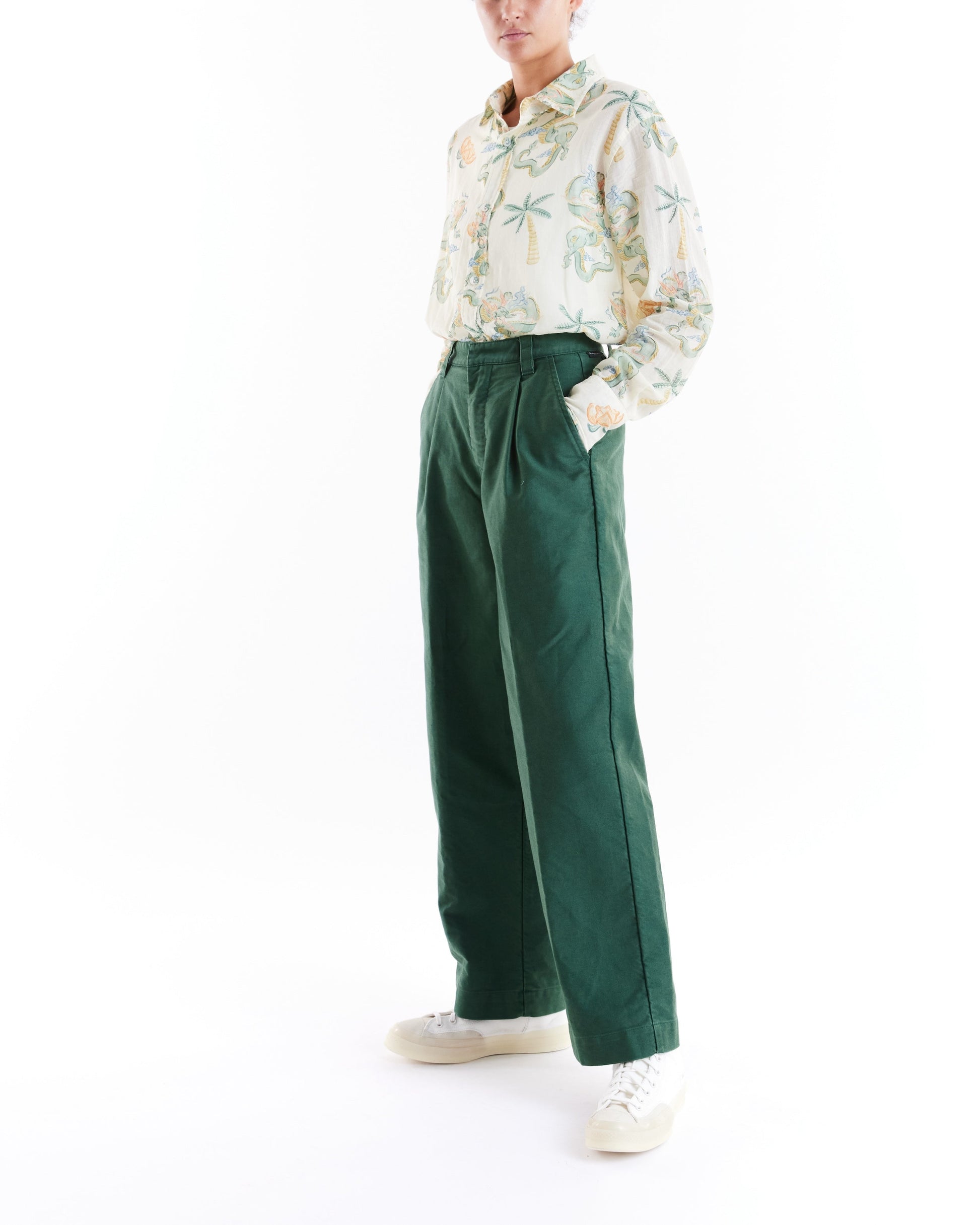 Relaxed Pleated Wide Leg Pant With Centre Pressed Crease, Bar And Hook And Zip Fly Centre Front Closure, Side Slash And Back Jet Pockets, In A Cotton Cordura Nylon Mix Fabrication With A Heavy Enzyme Stone Wash