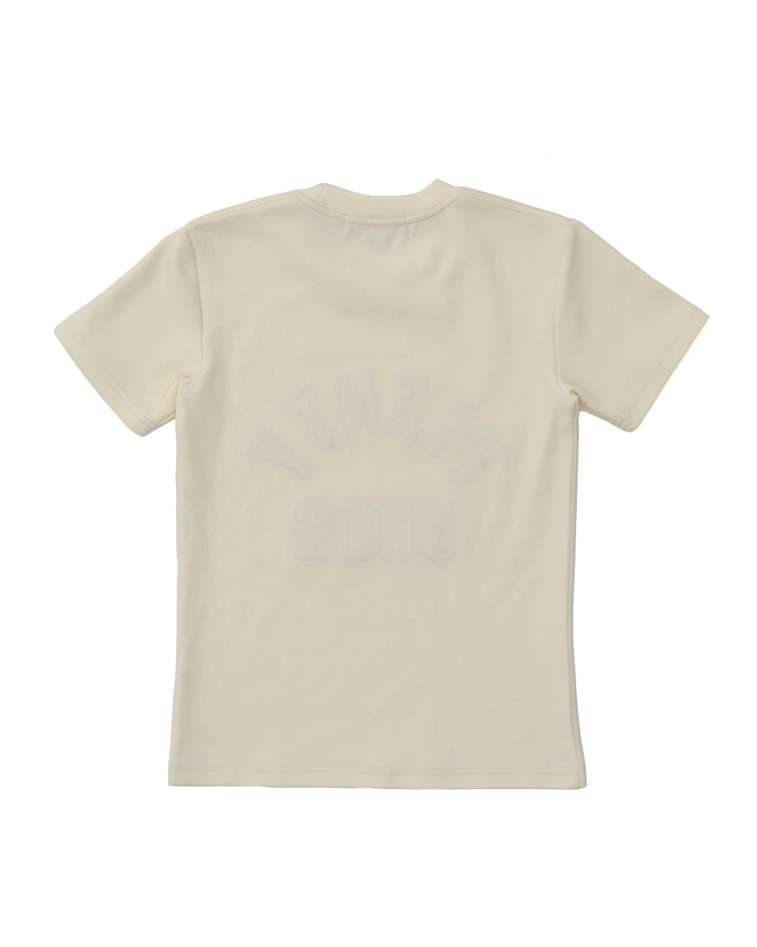 Regular Fit Short Sleeve Tee With Contrast Colour Sleeves And Neck Rib, Felt Applique Art At Chest, In A Polyester, Cotton Viscose And Elastane Mix Rib Fabrication With A Heavy Enzyme Stone Wash