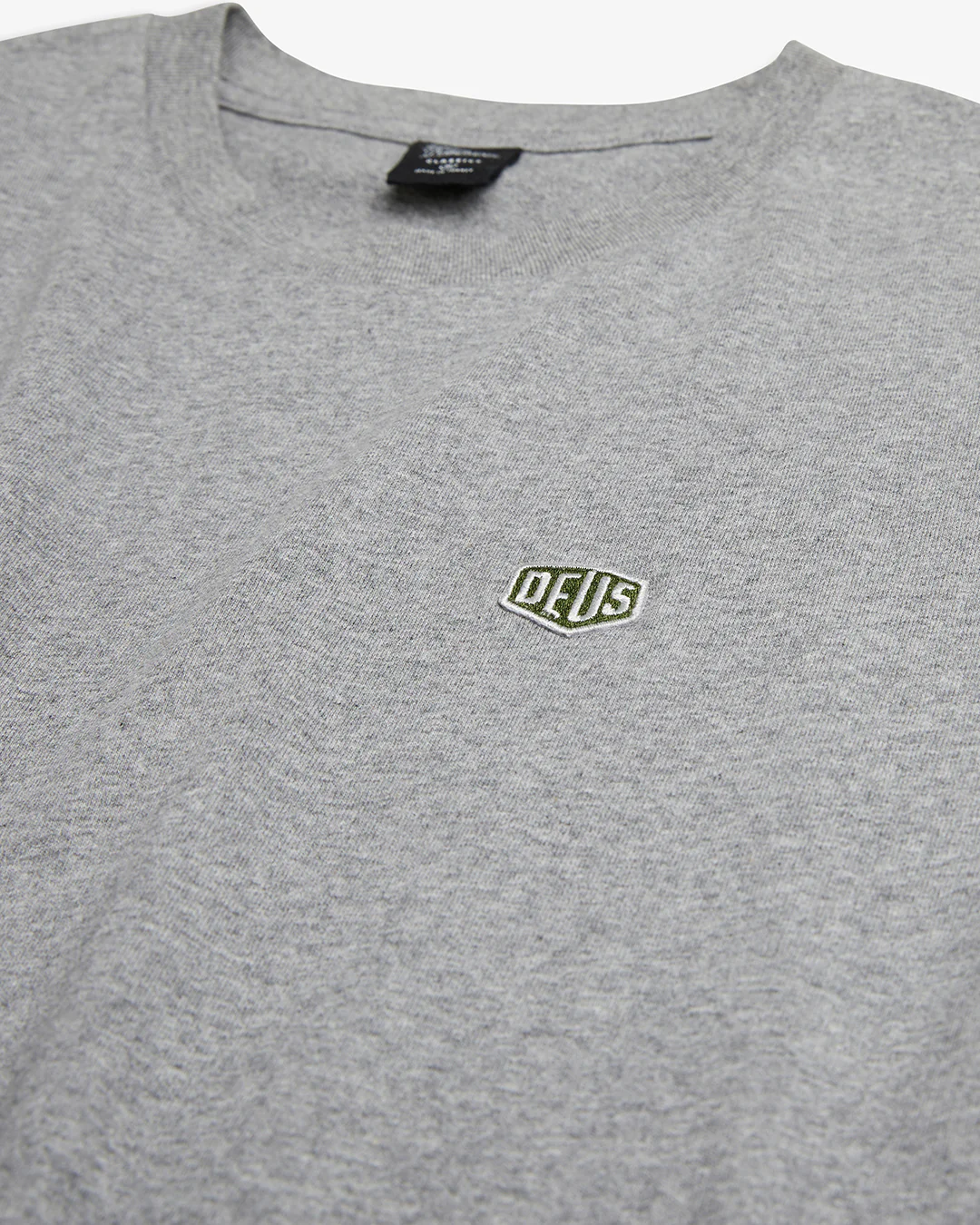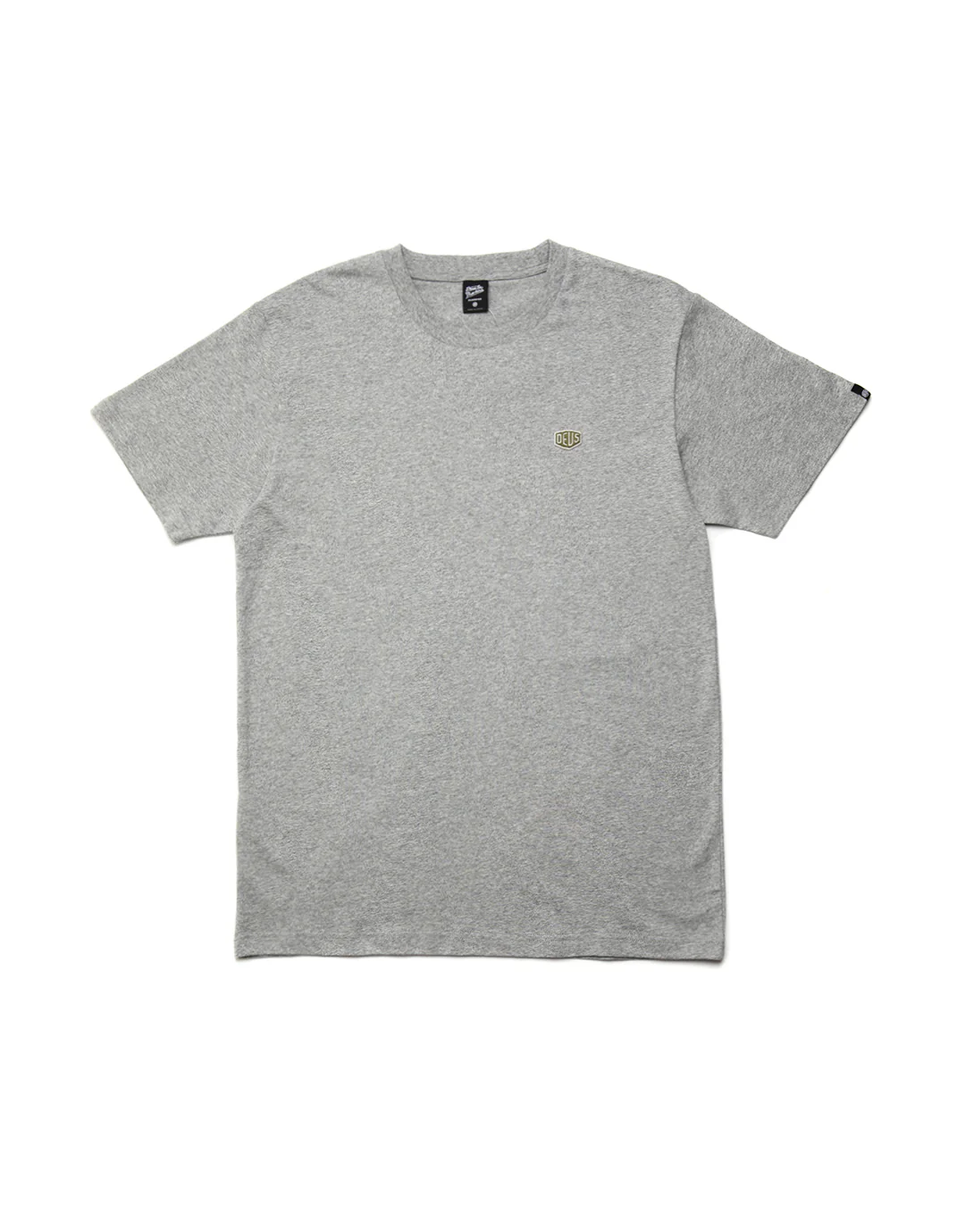Regular fit t-shirt, with chest embroidered shield badge. 190gm oe organic cotton jersey fabrication with a garment wash.