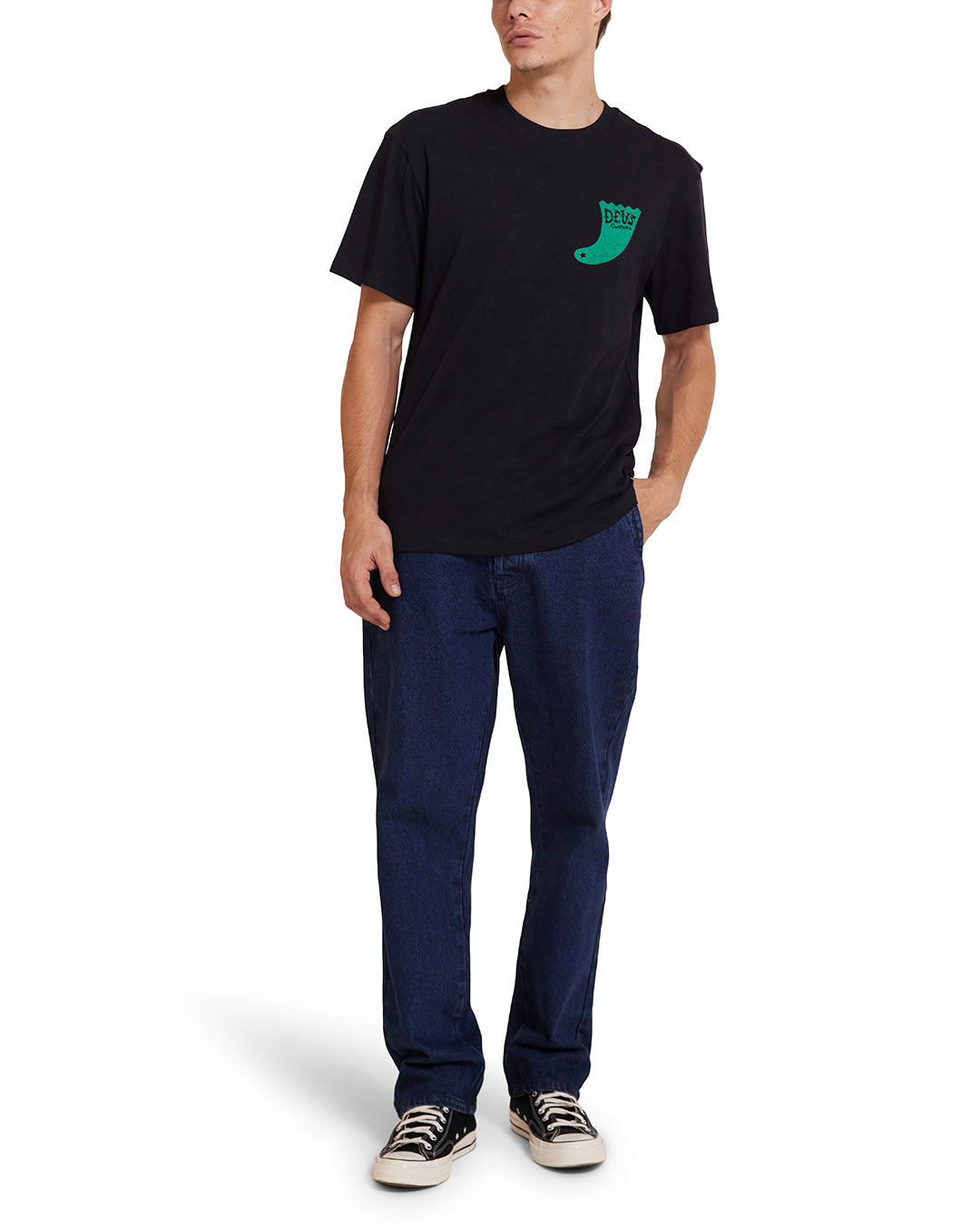 Box fit t-shirt with chest print, 220gm recycled cotton jersey fabrication with an enzyme stone wash.
