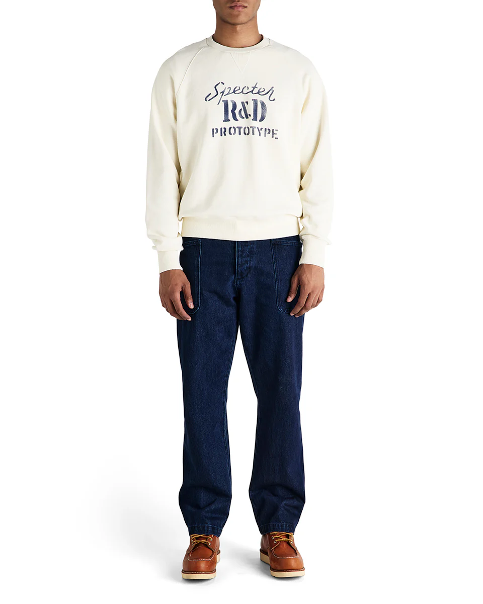 Regular Fit Tubular Knit Crew Neck Fleece With Front Printed Art, In An Organic Cotton Fleece Fabrication With A Heavy Garment Wash.