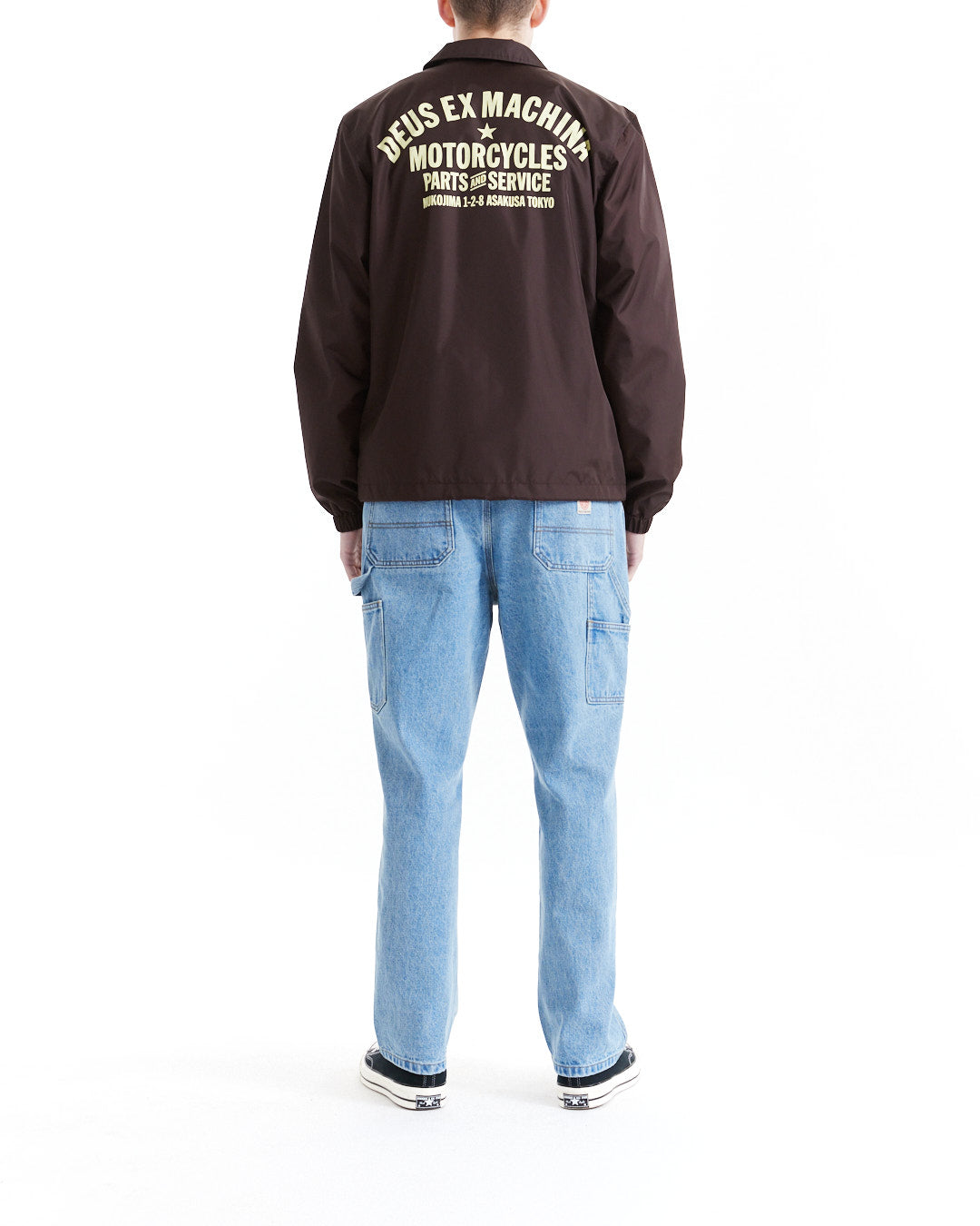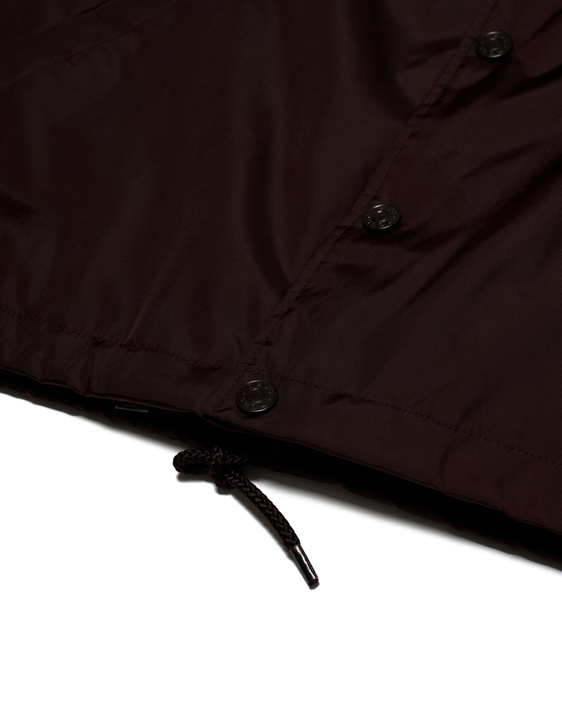 Regular fit classic coach jacket with chest and back address print, recycled nylon fabrication.