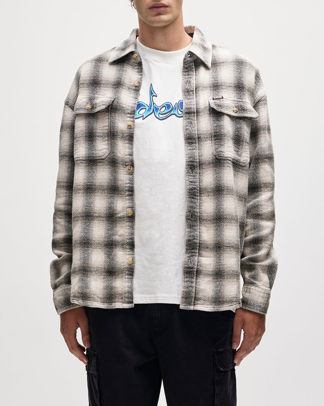 Skipping between dusty point breaks and neon roadside diners, here lives a perpetual vacation mindset. The Too Busy To Work Check Shirt lets graphics fade like polaroids left on dashboard.