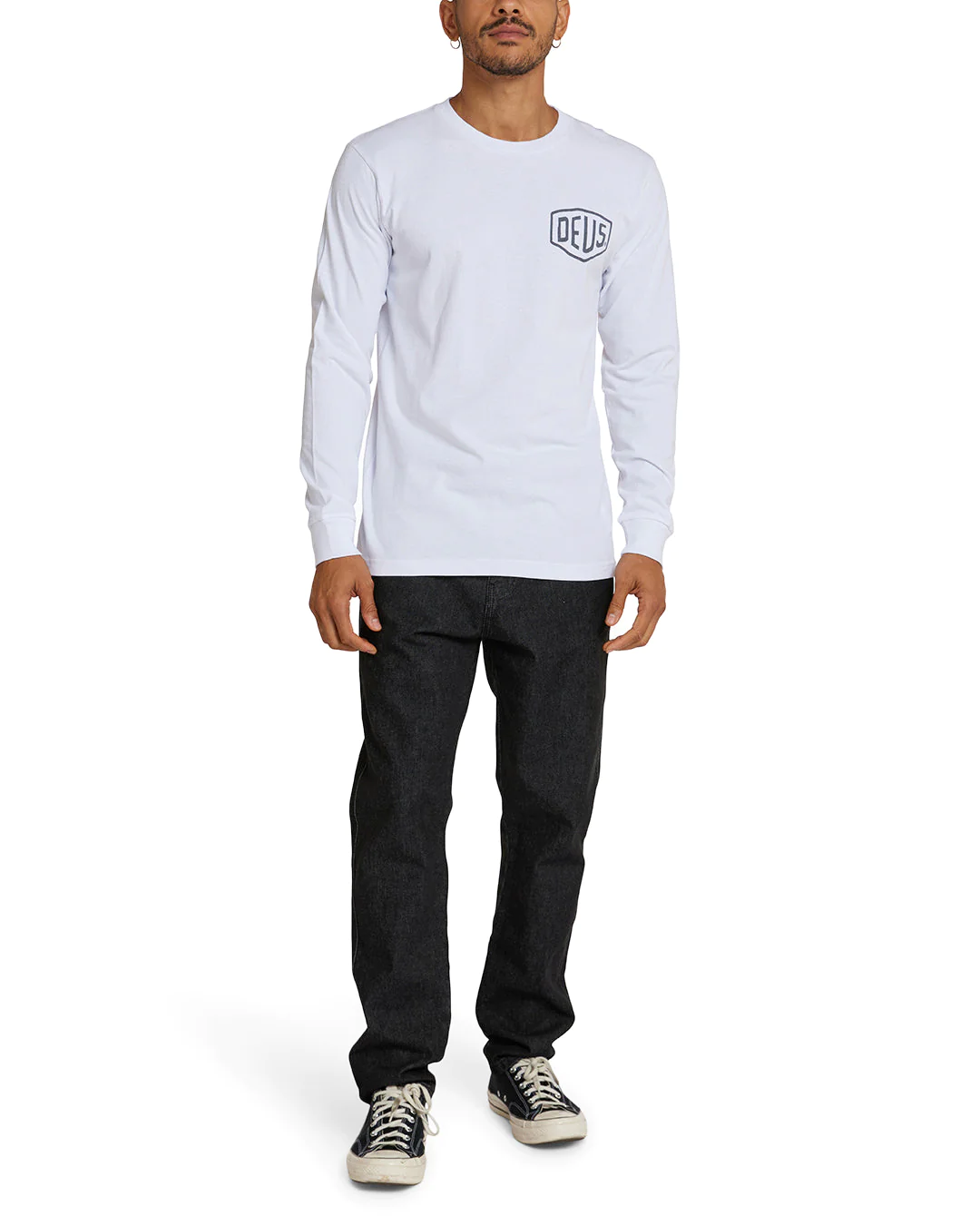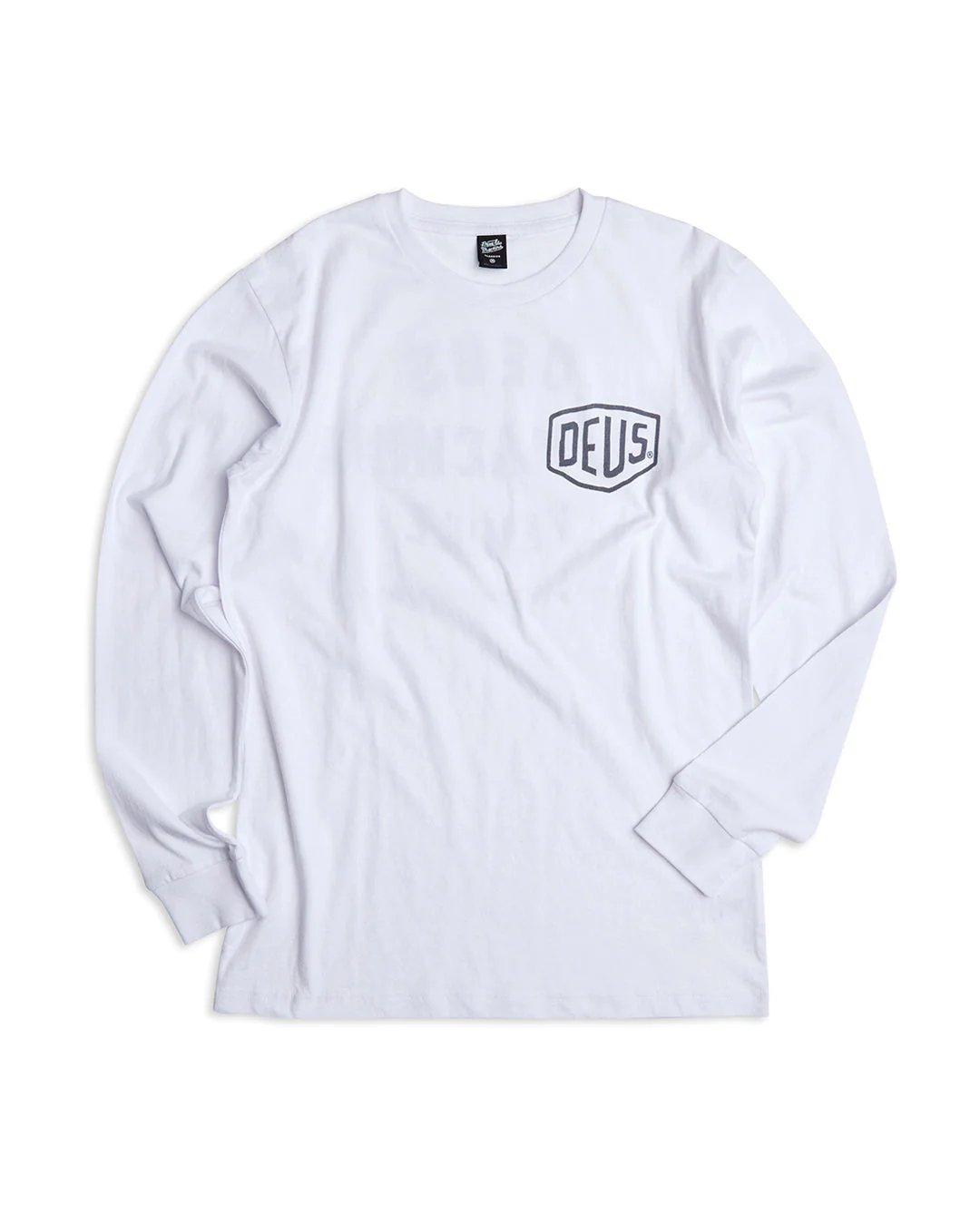 This regular fit long sleeve tee features our classic Deus shield logo on front, with Venice flagship address on back, with 20/1's 190gm cotton jersey fabrication and a garment wash.