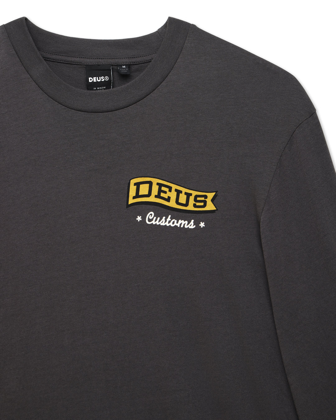 Fuelled by coffee from roadside pitstops and highways long forgotten, varsity sensibility plays alongside oil-speckled nostalgia. The regular fit Momento Ls Tee pairs retro-sport optimism with well-worn moto grit.